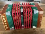Hohner diatonische accordeon. In principe komt er mooi geluid uit, maar hij moet dringend gestemd worden. Leuk voor iemand die dit zelf kan doen!
