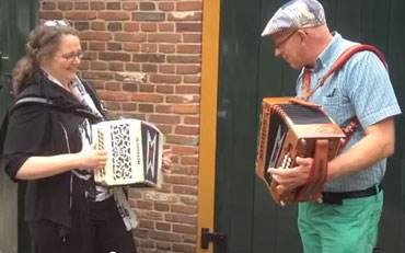 Het leuke van de combinatie trekharmonica en ukelele is dat het allebei instrumenten zijn waar je zowel melodie als akkoorden op kunt spelen. Auke had voor ons een aantal heel verschillende nummers uitgezocht waarop we diverse begeleidingsritmes konden oefenen, zowel op de trekharmonica als op de ukelele.